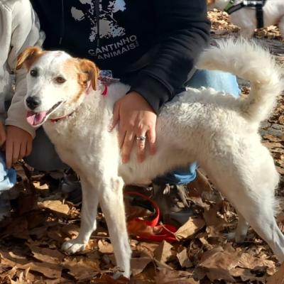 A Mira é uma excelente companhia para estes dias de chuva. Se puderem não lhe dizer nada, ela agradece, já está muito aborrecida com a chuva. Por uma caminha quente, tolera gatos, crianças e até outros cães.